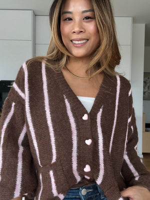 Stripe Herz Strickjacke braun/rosa